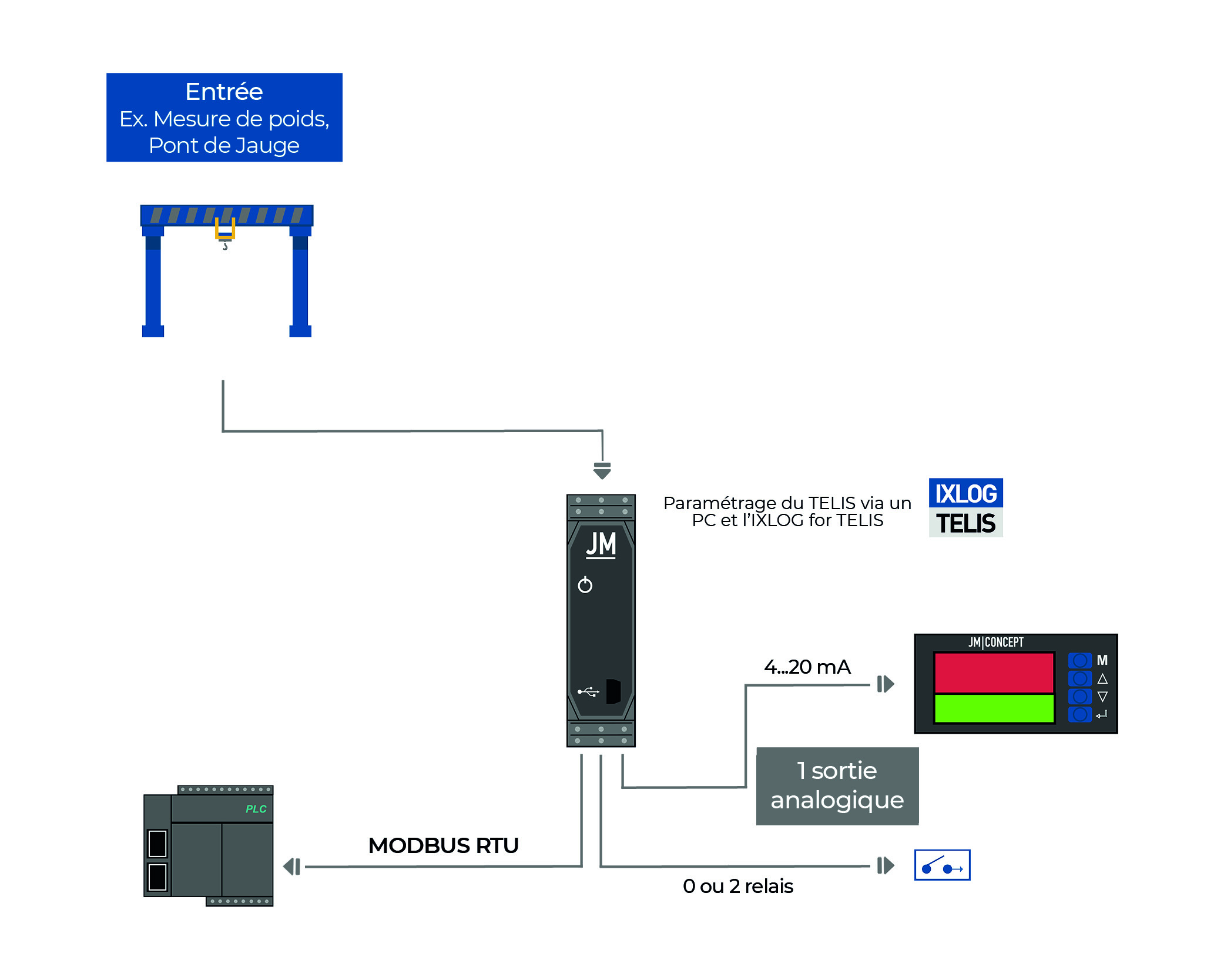 TELIS1000T1 - Convertisseur numerique à entrée Pont de Jauge sans affichage et avec une sortie analogique